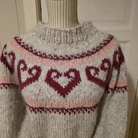 Høstlynggenser fra Rauma. Den er strikket i Vams 100% ull fra Raumagarn.