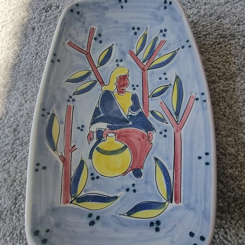 Vet ikke om fatet er laget i 1961. Det er stemplet 61 under og Terra Produsert i Norge. Fatet har krakkelert glasur. Kan sende porto kommer i tillegg jeg har vipps tar også kontanter. Pakker godt, sender da pengene er på konto. Se mine andre annonser. Jeg har mye forsjellig. Jeg har vipps tar også kontanter. Sender med post Nord for 69 kr. Med sporing. Har også fiks ferdig pakker godt.