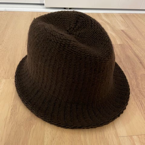 Brun hatt, laget av ull, fra Cubus, str. 57 cm.