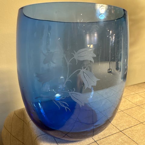 Blå fin vase fra Magnor 20 cm H og 10 cm D.Hel og pen .Kunn stått til pynt.Arvet av min bestemor
