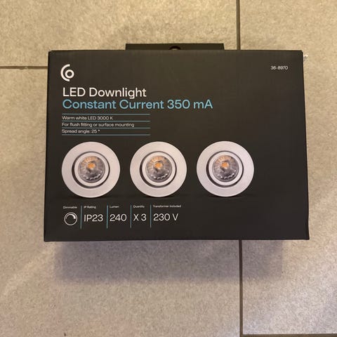 Downlights skapbelysning i (til under kjøkkenskap, garderobe mv) inkl adapter som kan dimmes. NB: dette er ikke led. Adapter må tilkobles strømforsyning da det ikke medfølger stikk kontakt. Se bilder for hva som medfølger i hver pakke samt beskrivelse av adapter og baksiden av pakken for installasjonsveiledning.