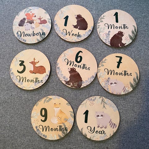 Selger forskjelliger milepælskort/milestone stickers/klistremerker for babyens første år/minner/opplevelser.
