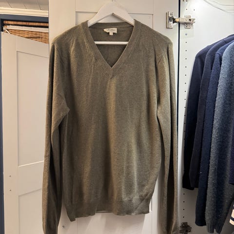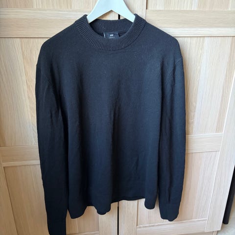 Høyhalset finstrikket genser fra HM Edition. I kasjmir-blanding (10 prosent, resten bomull). Størrelse large.