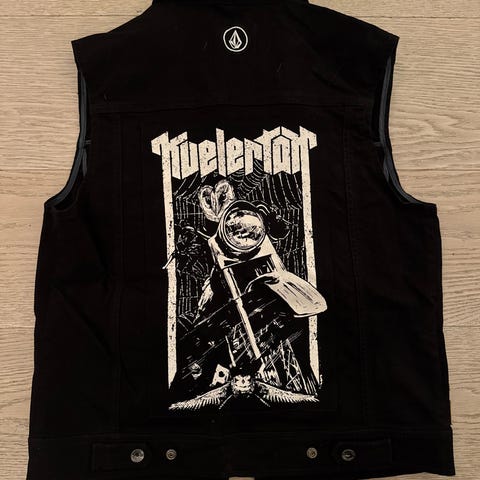 Kul vest med print i Denim fra King Kerosin. Brukt 1 gang ifm photoshoot.