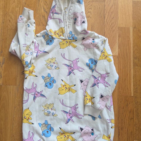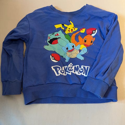 Tøff pokemonjakke i str 4 år. Foret. Mangler avtagbar hette. Marineblå/hvit. Betales med vipps og frakt på 73 i tillegg