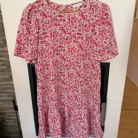 Fin sommer kjole selges. Lang splitt på den ene siden, går ned ved skuldrene. Brukt en gang, str 34