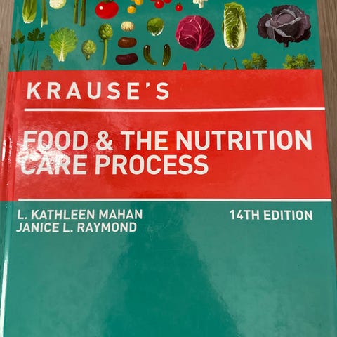 Krauses Food & Nutrition Theraphy ble kjøpt som pensumbok på ernæringsstudiet. En flott bok, men ikke brukt da jeg har foretrukket lærebøker med norsk tekst. Ulest og som ny. Ny pris var 1789,-