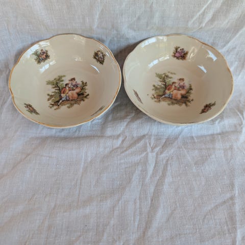 2 håndmalte porselens teposefat