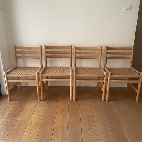 Stolene ble kjøpt i 2021, men er pent brukt (hatt puter i alle).