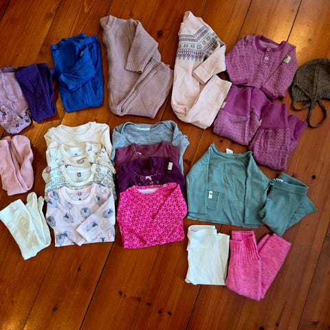 De to like ullbukser i forskjellige str. Farge: Dusty Rosa