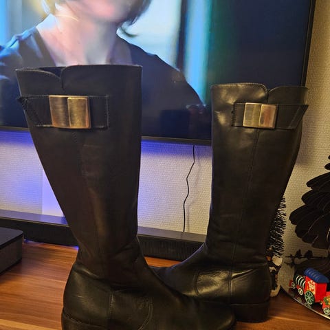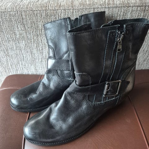 Lite brukte støvletter i brunn skinn. Selger billig på grunn av dårlig passform.