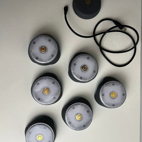 Selges med koffert og 12 adaptere for festing på gjenstander som målstenger osv
