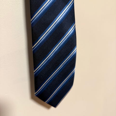 Blå-stripet slips og lyseblått lommetørkle - fin gave