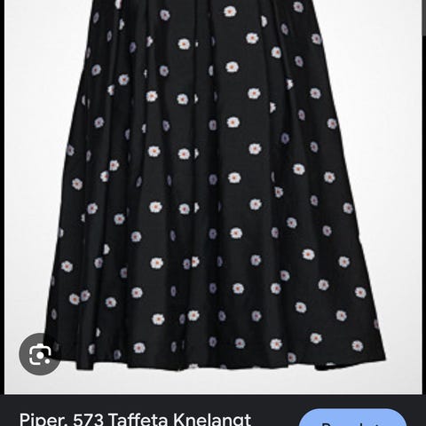 Stine Goya maxiskjørt i fargen 1337- Dahlia som er en type rød farge. Det er glidelås i siden og splitt på venstre side fra nederst og opp til midten av skjørtet. Det er for stort til meg noe jeg er veldig lei meg for. Dette er et fantastisk vakkert plagg. Det er ikke silke, men silkeglatt stoff på utsiden. Er solid stoff, ikke gjennomsiktig. Størrelsen står at det er XL men det er en liten XL i så tilfelle. Vil heller si at det passer de som bruker large da det ikke er elastisk i livet.