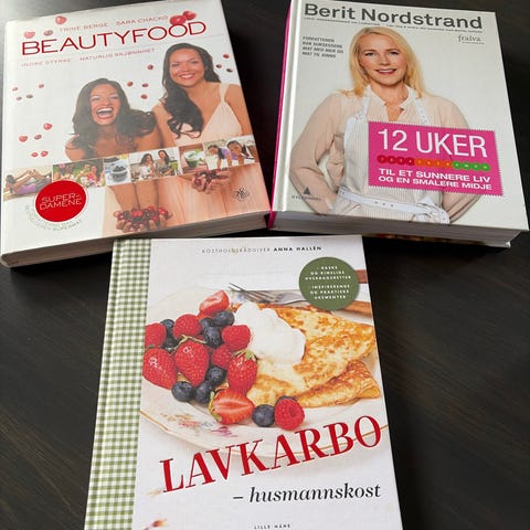 Selger to helt nye, ubrukte kokebøker. Kun stått i bokhylle.