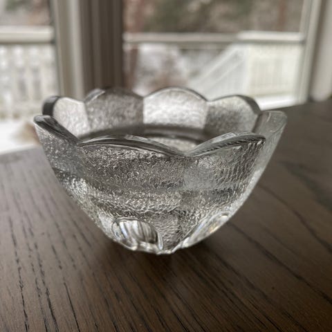 Stilig lysestake i glass til lange lys. Lysestaken er 14 cm høy.