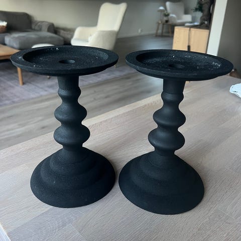 1 ubrukt Lumi lysestake 9 cm i sort matt metall med 1 skålformet glassmansjett i fargen smoke. Mansjetten kan byttes ut og finnes i flere farger og former. Liten skade på lysholderen