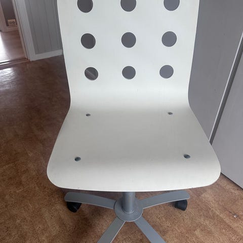 Stol til skrivebord - Ikea Jules modell - hvit - justerbar høyde - solide hjul
