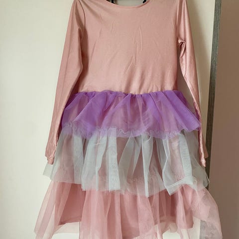 Senjorita kjole brukt 1 gang selges. Kjolen kan brukest fra 6-10 år. Tilhørende sko stør 34, vifte og to hårspenner. Fremstår som nytt.