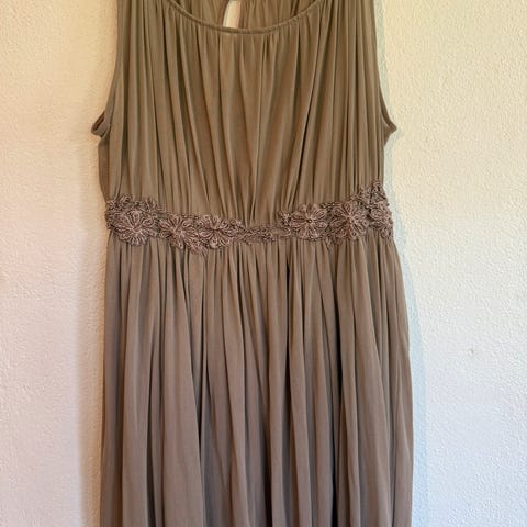 NY pudderrosa kjole m/paljetter fra Vila str. M, skrå ned bak -den er lengre bak enn foran: Lappen er fremdeles på.