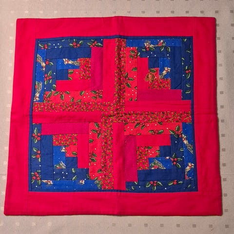Selger en søt juleduk i patchwork