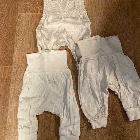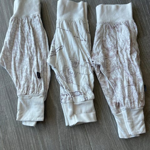 Ubrukte longs fra lilleba. Den med mønster merket str 74, den andre uten merker.