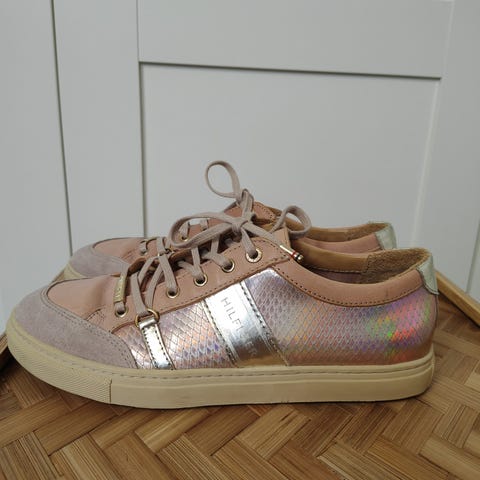Pent brukt hvite sneakers i skinn, merke Tommy Hilfiger, selges. Str 39