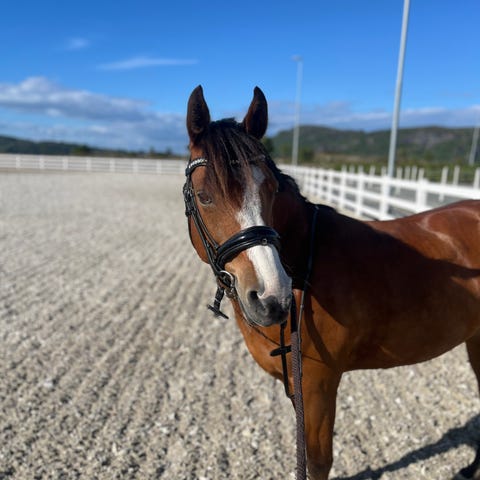 Er ukomplisert med smed, veterinær og transport. En hyggelig ponni ved et vennlig og arbeidsomt vesen. Han er mye tømmekjørt. Har gått med liner og dekk. Vært under rytter de siste ukene. Er fremover og positiv. Går fint ut på tur alene. Ulvetenner er fjernet. Fulgt opp på alle vis med vaksiner, parasittbehandling og hovpleie. Går pr i dag barbeint. Er vant til å gå både på løsdrift og stå på boks. Har alltid gått sammen med andre hester, men gjør ikke noe nummer å bli tatt inn alene eller om han må stå igjen ute alene en stund.