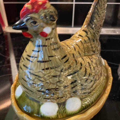 Flott dekorert egghøne fra Figgjo,høy alder.