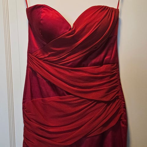 Y2K rød Passer noen som bruker 36/38 .Står ikke str i kjolen men vet den passer til 36/38 siden jeg har prøvd den.Lappen henger på aldri brukt