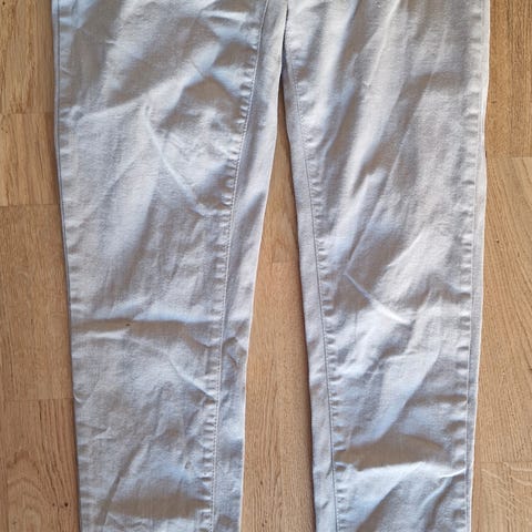 Bukse i kvalitetsmerket Gerry Weber. 98% bomull, 2% elastan. Lommer foran. Middels høy i livet, smale ben. Myk og behagelig å ha på. Det står str. L i buksa, men jeg vil si den er mer en M, dvs. 38-40. Selger den fordi den har blitt litt liten for meg. Den er lite og pent brukt.