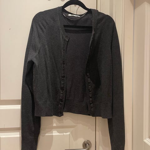 Lite brukt cardigan fra Gina Tricot med fire store knapper selges rimelig. Veldig deilig stoff av polyamid, viscose og elastan. Str. L.