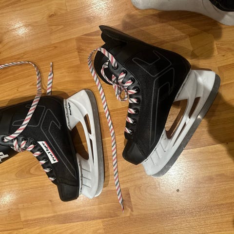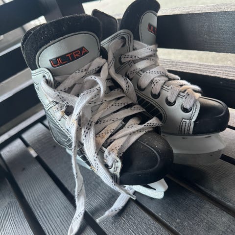 Blant toppmodellene for ungdom da de ble kjøpt, meget komfortable, lette og stødige. Integrert luftpumpe for å sikre perfekt forming til foten. Ekstra solid støvel med god beskyttelse mot puck. Utskiftbart høykvalitets stål med vektreduksjon i skjærene. Av den slitesterke typen. Slipt kun to ganger på samme utstyr som A-Laget sliper på. Beskyttelsestrekk for skjærene følger med. Bruksmerker er kun kosmetisk, skøytene er 100% i orden.