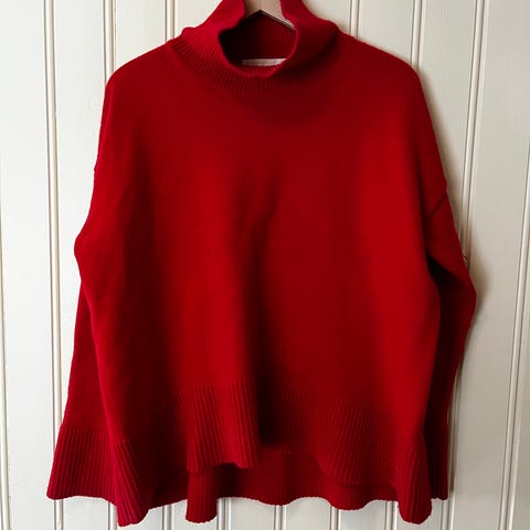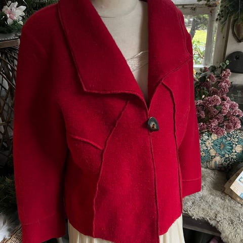 Rød fin ullcape (65% ull og 35% viscose) med to stikklommer.