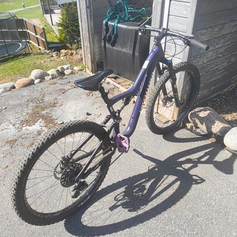 Det er også byttet stem, dekk, holker og satt på plattformpedaler (nå litt slitt, men har fortsatt mange gode turer igjen).
