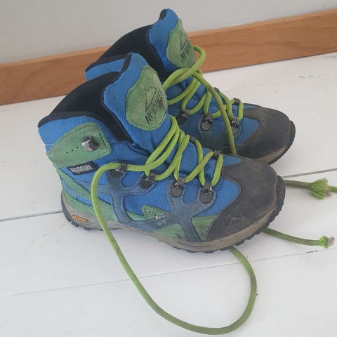 Litt slitt på innsiden av begge skoene (se bilde). Selges derfor billig, selv om det trolig har lite å si for bruken. Det er kun forsterkningen som er slitt, ikke selve stoffet i skoen.