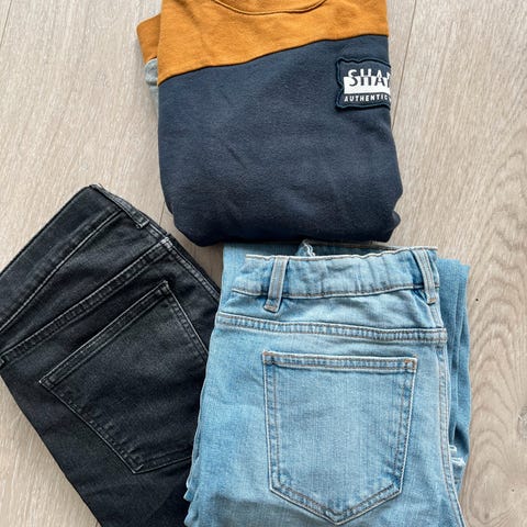 Selger denne pakken med klær. Denne klespakken inneholder 2 pen-gensere. Den ene er fra H&M og den andre er fra Name It. Se siste bilde for mer info.