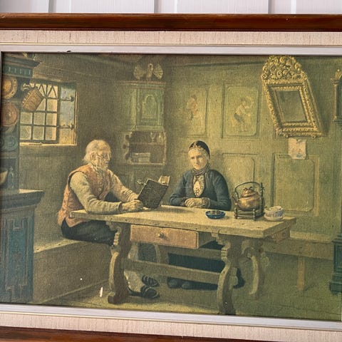Original radering av Johan Nordhagen etter Adolph Tidemands maleri "de ensomme gamle". Merket med Abels Kunstforlag og Reproduktionsanstalt, Christiania og Kupferdruck von Meisenbach Riffarth & Co Berlin.