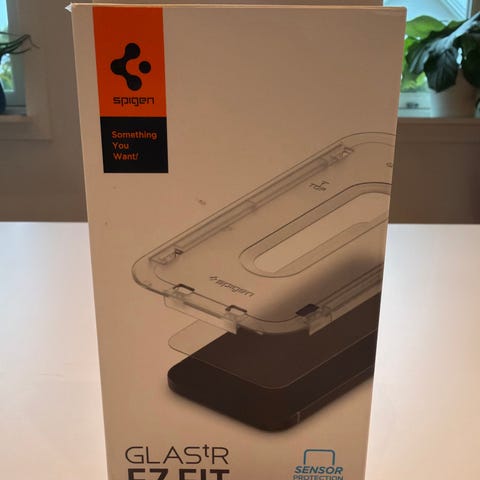 Ny sett med iPhone 14 Pro skjermbeskytter glass og våt og tørr wipes for å vaske skjermen før man tar det på.
