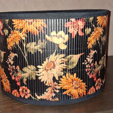 Retro / vintage oransje stor lampeskjerm med brun pyntekant. Til stor pære. I god stand.