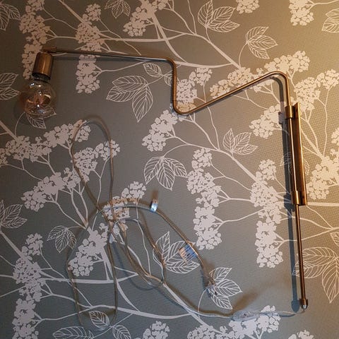 Lampe som kan festes på hyller eller bord i røff, industri stil/ factory stil.
