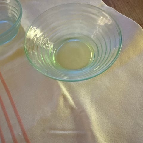 Ca 14 cm i diameter øverst, ca 5 cm høy. Sender gjerne med posten