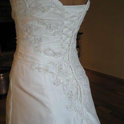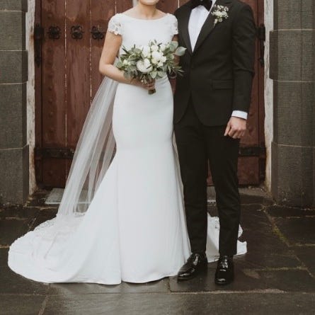 St. Patrick Lara brudekjole, str. XS/XXS (tilpasset mine mål av skredder). Kjøpt brukt i 2019, altså brukt 2 ganger. Renset umiddelbart. Ingen synlig merker.