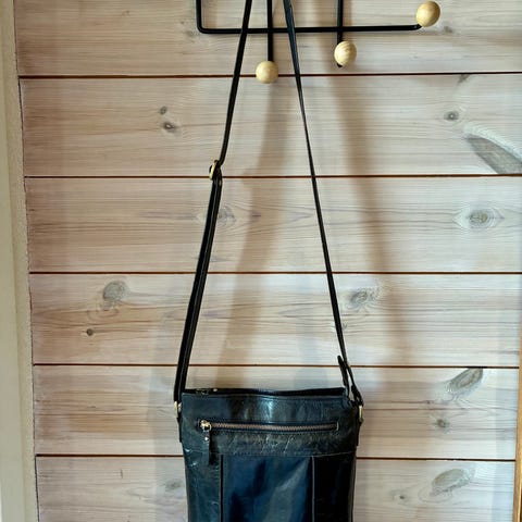 Skulderveske i sort skinnimitasjon - 7 lommer - 20 x 20 cm