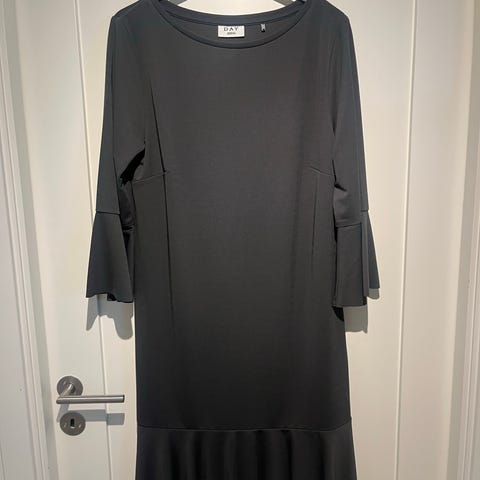Klassisk kjole til fest og hverdag. Lomme forran på kjolen. Stoffet i kjolen er viskose/polyamid/elastan. Kjolen er brukt en gang, da den blir for stor til meg.