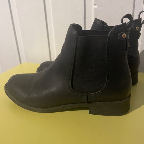 Svarta skor med chunky lysebrun såle fra Asos. Str 38.