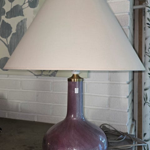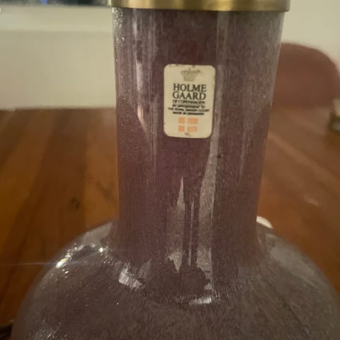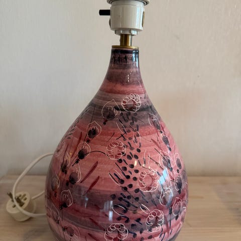 Flott , nydelig rosa bordlampe fra Holmegaard. Veldig tung. Høyde ca 30 cm til lysholdere og ca 77 cm i omkrets