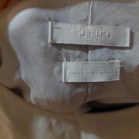 Usikker på stoffet da lappen er klipt av, men et tykkere stoff som faller fint.