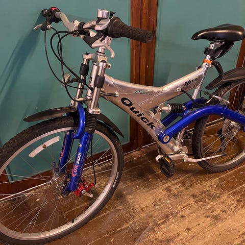 Meget lite brukt sykkel. . Må hentes. 26 Tommer. Må muligens ha nye dekk eller slanger. Kanskje bare fulle luft usikker. Ønsker bud. Må hentes.