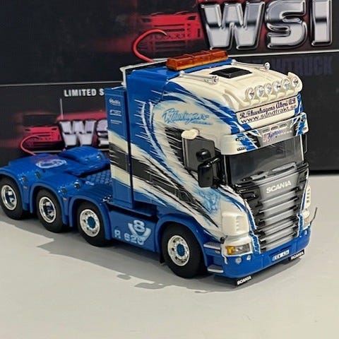 The Scania R series heavy tractor was developed on the current needs of the world market. SCANIA engines are built to carry out the most demanding jobs and highly appreciated as they are robust, reactive and efficient. The Scania R Series is designed to meet the highest demands in terms of fuel economy and reliability. The exterior design gives the vehicles an imposing appearance on the road and is considered the number one for making fantastic “SHOW TRUCKS”, the famous decorated tractors. The extraordinary styling of the exterior is combined with exclusive new interiors that offer exceptional comfort for the driver and a wide range of color and material options. Our model is also completed by a fantastic decals sheet and an accurate sheet of metallic adhesives, ready for application, for a correct finish of the tractor. In addition, the package contains new chromed plastic parts to make the model particularly realistic.
